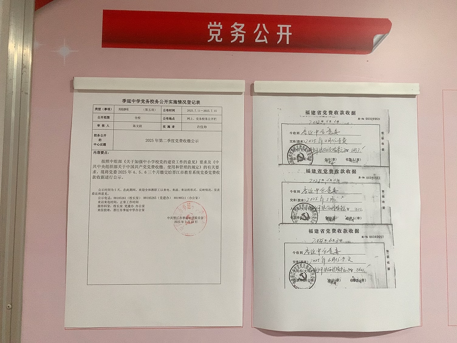 2025年4、5、6三个月缴交给晋江市教育系统党委党费收款收据